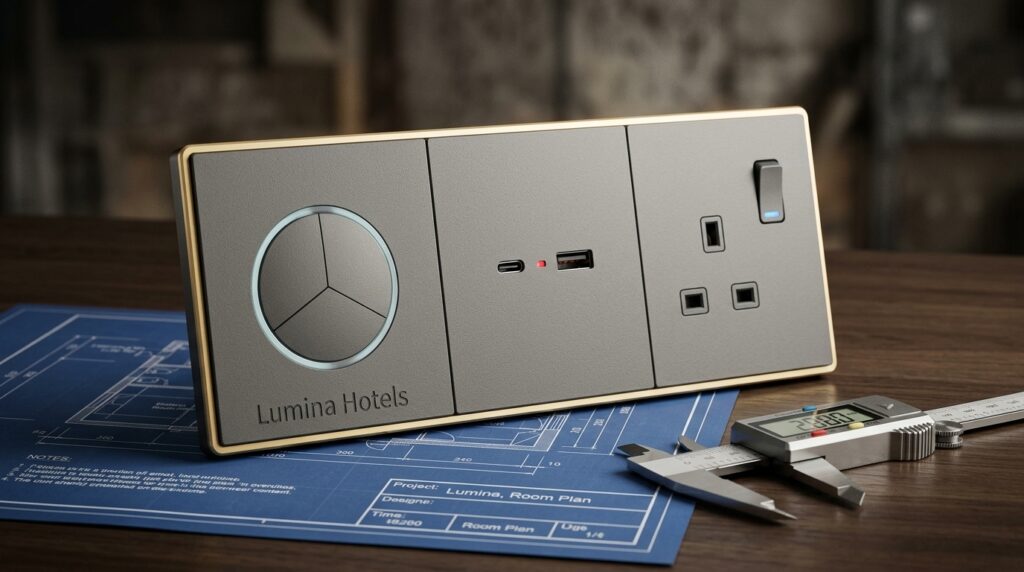 If a hotel architect requests a specific bedside configuration—such as one master light switch, one DND (Do Not Disturb) button, one Universal AC socket, and one USB-C PD port—your wholesale team does not need to order a custom-manufactured batch from the factory. You simply pull the standard modules from your inventory and snap them into a 4-gang frame.